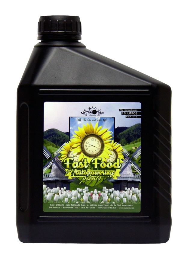 FAST FOOD ORGANIC de B.A.C. es un fertilizante orgánico completo diseñado para facilitar el abonado durante todo el ciclo (crecimiento y floración). Su formulación es ideal para cultivadores que buscan un programa sencillo y efectivo, especialmente útil en variedades no fotoperiódicas (autoflorecientes), aunque igual de válido para plantas fotoperiódicas.