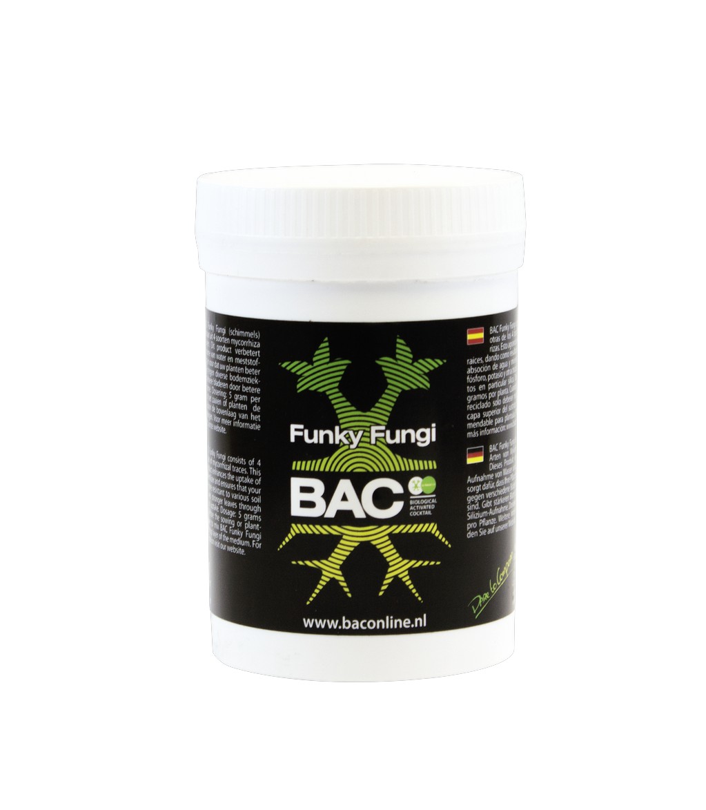 B.A.C. Funky Fungi incluye los cuatro tipos de micorrizas para ofrecer la máxima protección frente a hongos dañinos del suelo y para fortalecer el sistema radicular. Esto favorece la nutrición de las plantas y su desarrollo, traduciéndose en cultivos más sanos y productivos.