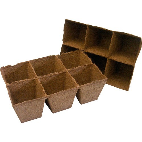 - 6 alveolos — macetas de 8 x 8 cm, indicadas para plántulas de mayor tamaño o para obtener raíces más desarrolladas antes del trasplante.